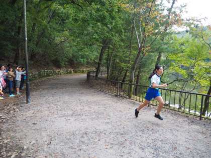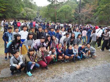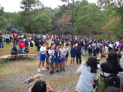 大文字駅伝予選会で、走り終えたシーンです。ランナー、そしてクラス全員での記念撮影の様子です。この日、多くの保護者のみなさまが応援に来ていただきました。ありがとうございました。保護者のみなさまの声援は子どもたちにとって力強い後押しとなったと思います。