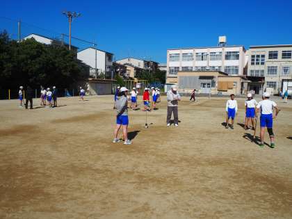 11月6日(水)3・4時間目6年生は朱六体育振興会のみなさんから、グラウンドゴルフの手ほどきを受けました。学校の体育だけではなかなか体験できない種目です。これがやりだすとおもしろいのです。けっこうはまります。子どもたちも歓声をあげつつ、熱中していました。