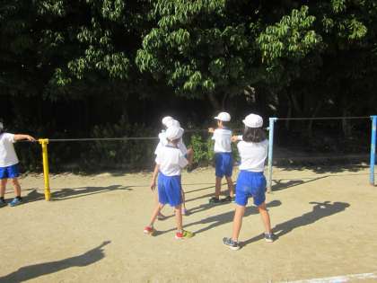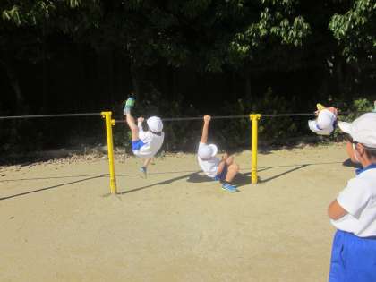 てつぼうあそびの学習を始めました。今日は『だるまさん』や『地球回り』などをしました。