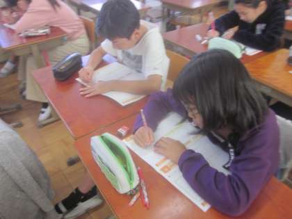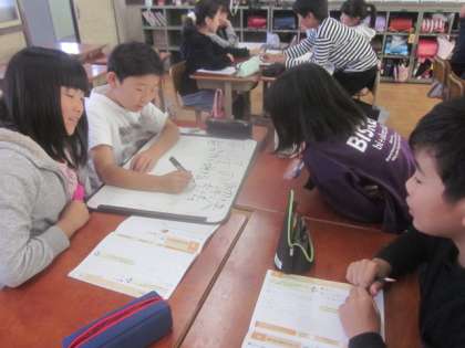 自分の考えをノートに書いたり,話し合ったりしている様子です。