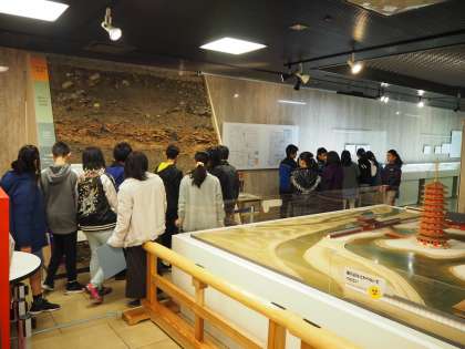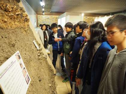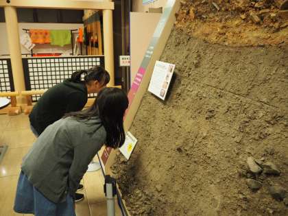 11月20日(水)6年生は理科の授業で、アスニーにある京都市平安京創生館へ行きました。理科ではこれから地層の学習をします。京都市平安京創生館には、中京区の地下の思想の標本があります。今の高倉小学校あたりの地層の標本です。朱六の学区には地層がみられるところがないので、アスニーでの見学となりました。