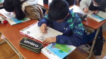 新しい単元に入りました。今日はクラスのデーター整理のために各平均を計算しています。