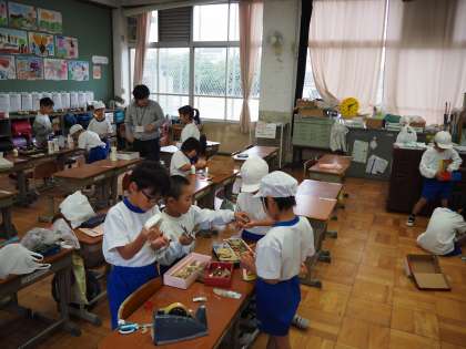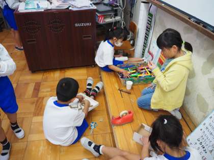 12月5日(木)1年生の教室の様子です。生活科の授業で秋にあるもの、たとえばどんぐりなどを使って自分たちで、おもちゃや工芸品を作るのにチャレンジです。手を動かすことは大切です。頭の中にいろんなひらめきが出てきます。