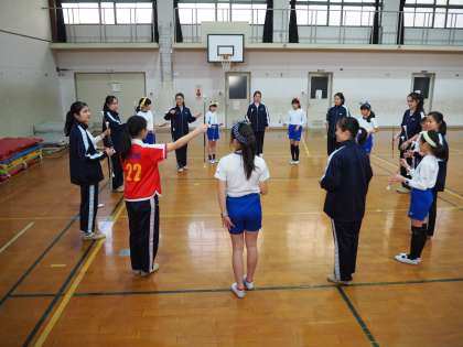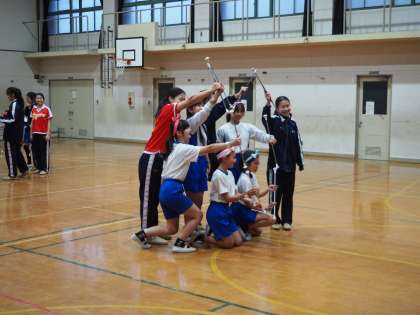 12月5日(木)嵯峨野高校バトン部の生徒のみなさんと本校のバトン部の子どもたちの交流会がありました。高校生の演技を見て、そして高校生から技を教えてもらい、一緒に演技をして、子どもたちのとってもいろいろなことを吸収できた素晴らしい時間でした。小学生にとって、中学生、高校生ははるか遠い目標ではなく、もうすぐ自分にも訪れる身近な存在です。なりたい自分がすぐそこにやってくる。この交流会にはそんな雰囲気があります。