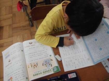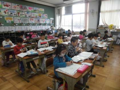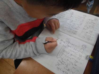 文章問題から図,式,答えを考え,なぜその式になるかを説明する学習をしています。「人が来て,増えるから・・・」「飛んでいって,減るから・・・」と頭を悩ませながら,一生懸命考えていました。最後は,ひきざんカードを使って,速く正しく計算する練習をしました。