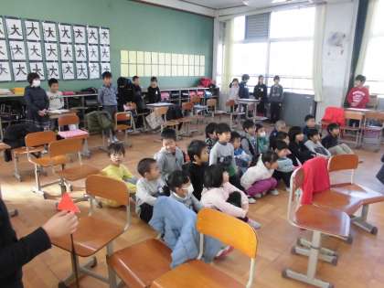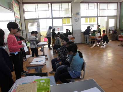 総合学習で調べてまとめたことを一年生に伝えました。長い時間をかけて自分たちが調べたことをできるだけわかりやすくまとめ,クイズ形式や紙芝居などにして伝えました。内容は,京都のお祭りや行事のことを伝えました。