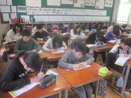 漢字の学習をしている様子です。