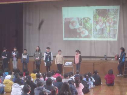 栽培委員会の5年生が発表している様子です。