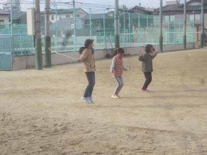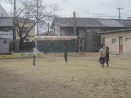 なわとび,大繩,田んぼで遊んでいる様子です。