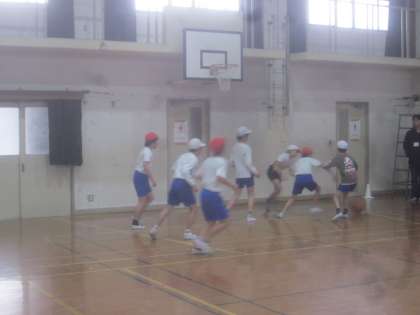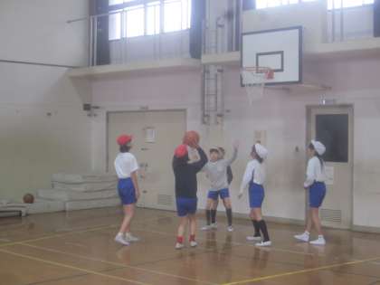 「バスケットボール」の学習に取り組んでいる様子です。