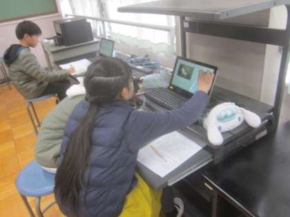タブレットや本などの資料を使って京都の魅力を調べています。
