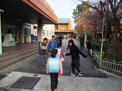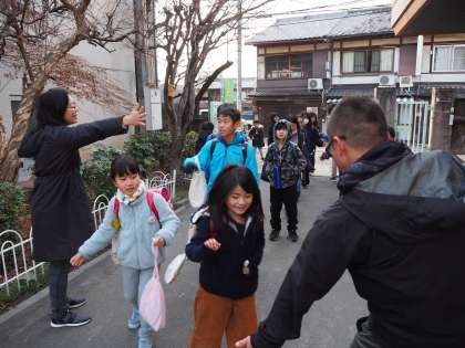 1月20日(月)毎週月曜日は児童会によるあいさつ運動です。ハイタッチも慣れてきました。