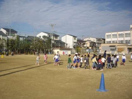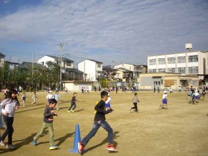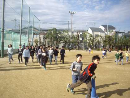 業間マラソン初日ということもあり,先生の「あと4分!」の合図に「まだ4分もあるの!?」という声も聞こえてきました。なかなか自分の走るペースをつかむことが難しかったですが,中には一定のペースで走ることができていた人もいましたよ。