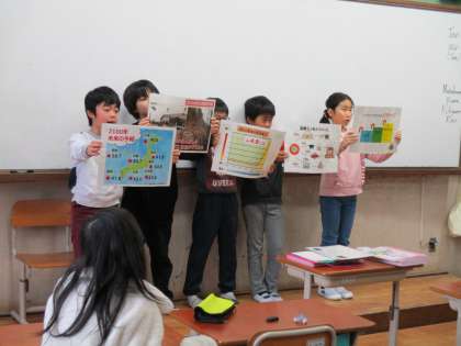 3校時に,気候ネットワークの方に来ていただき,冬休みに取り組んだエコライフチャレンジの振り返り学習を行いました。各自に配られたエコライフ診断書をもとに自分の目標を立て,グループで・全体でと発表し合いました。一人ひとりの小さな取組も,みんなが行えば大きな力になることに気づけたようです。立てた目標を,是非実行していってほしいと思います。