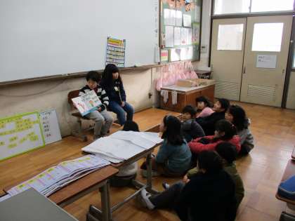 絵本係の活動で,朝の読書時間に読み聞かせをしてくれました。セリフのところも役になりきっていてとっても上手です。