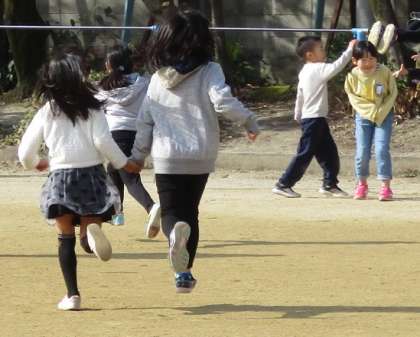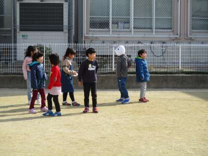 今日のみんなあそびは「おにっごっこ」です。国語の教科書の『おにごっこ』に載っていた「きまり」を実際にやってみました。いろいろなルールが合わさって面白かったのですが,帰りの会の反省では,ルールを守る大切さを感じる意見が出ていました。