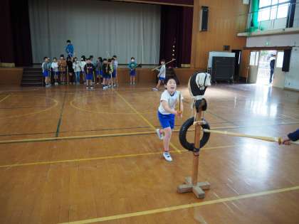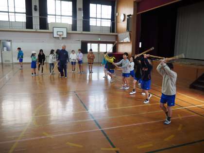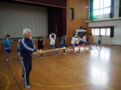 2月7日(金)4年始絵を対象に中京少年補導朱六支部の方により剣道教室が開かれました。竹刀を持って素振り、そして打ち込み人形への気合を入れた面打ちなど基本的な打突を体験すること、そして剣道でも大切な礼法についても学習しました。日本の武道の一端に触れることができる時間でした。