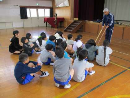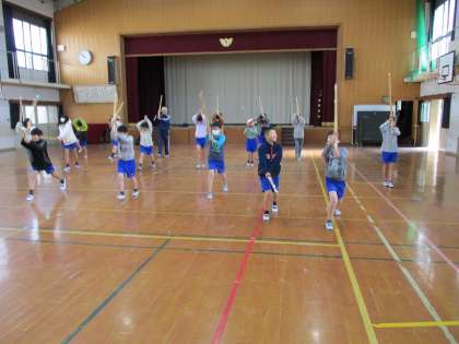 3・4校時,少年補導の小泉さんに来ていただき,剣道を教えていただきました。竹刀を握るのは初めての人がほとんどでしたが,みんなしっかりと声を出しながら,楽しそうに素振りをしたり面や銅を打ち込んだりしていました。小泉さん,どうもありがとうございました。