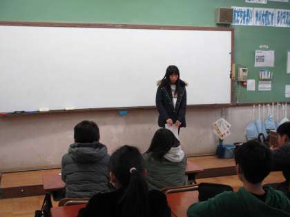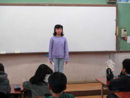 自分がすいせんしたいものについてスピーチをしている様子です。