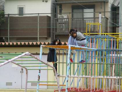 ドッジボールをしたり,遊具で遊んだりしている様子です。