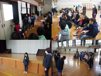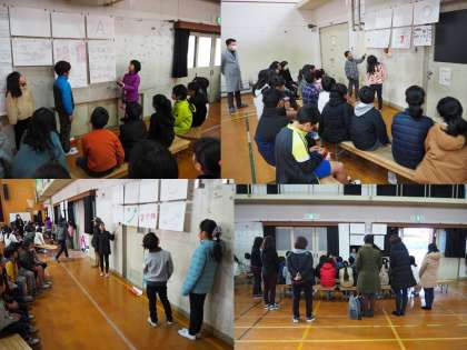 3年生の子どもたちは、朝早めに登校して体育館の椅子をならべて準備をして、練習をしていました。そして本番でも、3年生の代表の子どもが進行していきます。そしてていねいに自分たちが調べたこと気づいたことを伝えていました。そして聞く他学年の子どもたちも静かにしっかり聞いているようで、3年生に質問や感想を伝えていました。