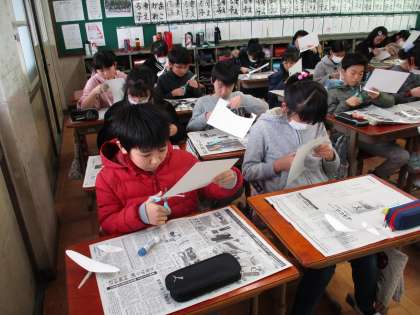 どんな紙飛行機ができるか楽しみです。