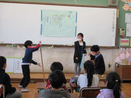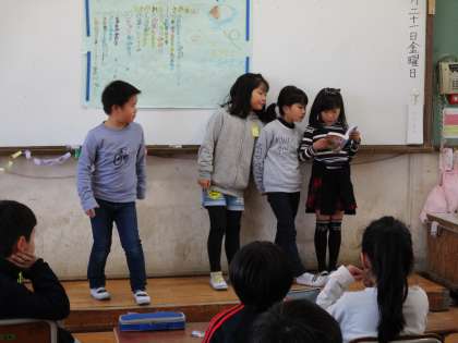 係からの出し物をしました。なぞなぞや紙芝居の読み聞かせ,クイズなど楽しい出し物がたくさんでした。手作りのプレゼントも渡して心に残る会にできました。