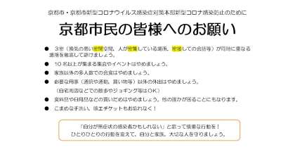 京都市より新型コロナウイルスの感染拡大防止のためのお知らせ