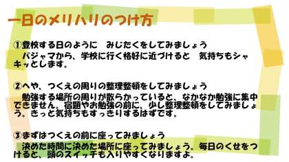 一日のメリハリのつけ方(スクールカウンセラーより)