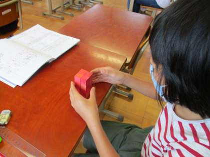 今日から体積の学習が始まりました。体積は,1立方センチメートルがいくつ分で考えるとよいことがわかりました。面積の学習とつながっていることも実感したようでした。
