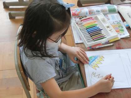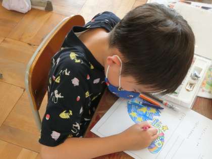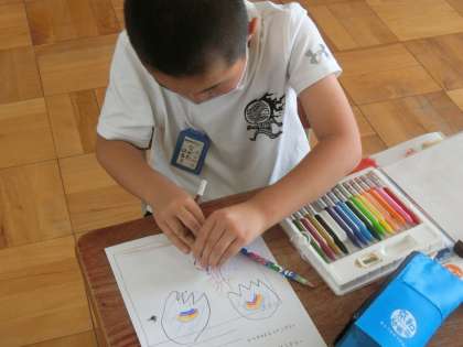 2年生の図工の学習で,「ひみつのたまご」を描いています。自分だけの特別なたまごをデザインして,たまごから何が生まれるか考えています。次回からは,実際に色画用紙をたまごの形に切っていきます。