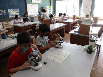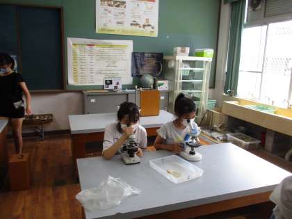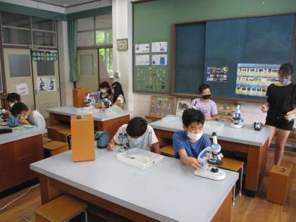 顕微鏡を使って観察をしている様子です。