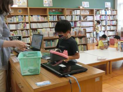 国語の時間に「図書室たんけん」を行いました。久しぶりに図書室に行き読みたい本を探しました。これから定期的に,図書室での学習を行う予定です。
