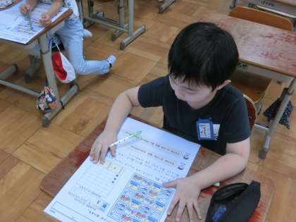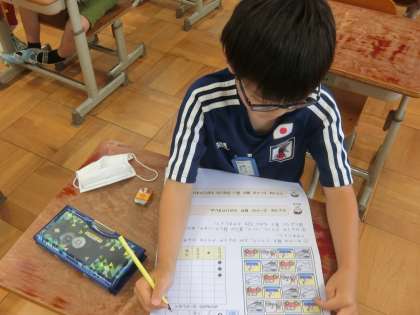 算数「ひょうとグラフ」のテストを行いました。丁寧に見直しをする様子が見られました。