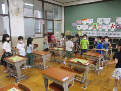 『うたってともだちになろう』の学習です。歌にふりをつけて動いてみました。次に新しい歌『セブンステップス』も数に合わせて楽しみました。