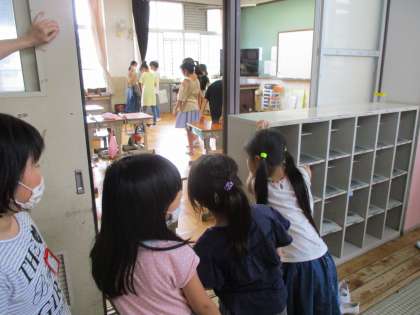 6年生がお掃除に来てくれました。いつもはお掃除の邪魔にならないように違い教室に行っていたのですが,今日は,お掃除の仕方を覚えるために見学しました。さすが6年生です。