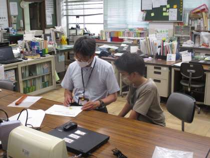 校長先生に3Dについて教えてもらっている様子です。