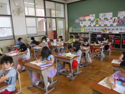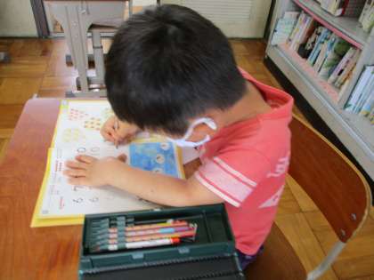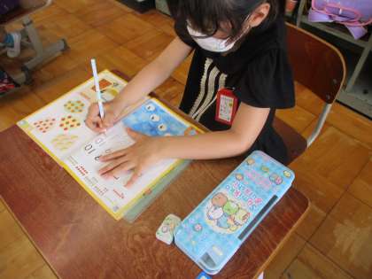 6から10までの数の書き方を学習しました。8や9は,上手に書くのが難しそうです。