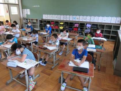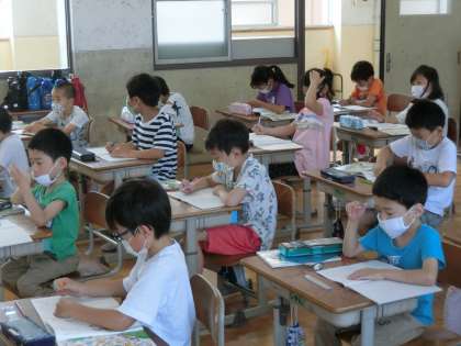 2年生の学習で,「ともだちをさがそう」をしています。話し方や聞き方について,話し合いました。自身の聞き方を振り返り,メモをとりながら聞く大切さに気付きました。これからも,話し方名人・聞き方名人を目指してほしいと思います。