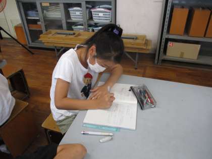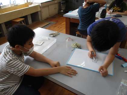 実験をして分かったことをノートやホワイトボードにまとめています。