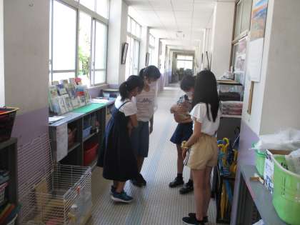 グラウンドで遊んだり,モモちゃんのお世話をしたりして過ごしました。