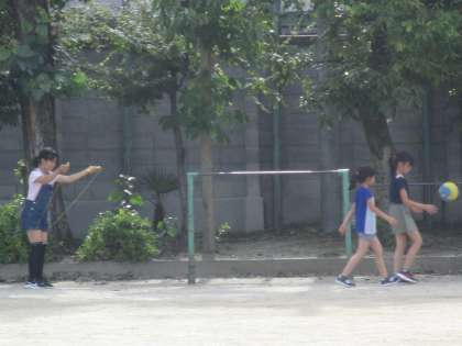 元気にグラウンドで遊んでいます。