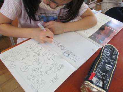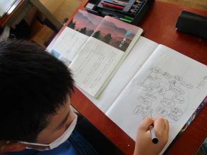 春は過ぎてしまいましたが,春の風景を文に表す学習をしました。「春」をイメージしたイメージマップをもとに,春の良さを表した文が完成しました。