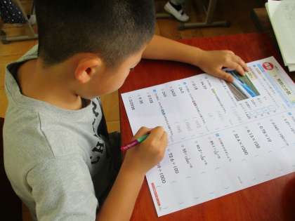 まとめのテストに取り組みました。小数点の位置に気をつけ,間違ったところはお家でもしっかり復習してほしいと思います。