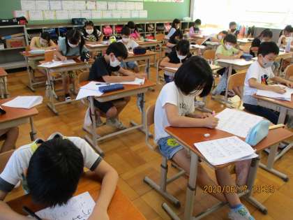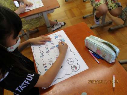 今日は,『きつつきの商売』の学習をもとに,一人一人が『おとや』になって,どんな音を作りいくらで売るかを考え,『かんばん』を書きました。いろいろな音を色々な値段で看板のメニューに書いていました。