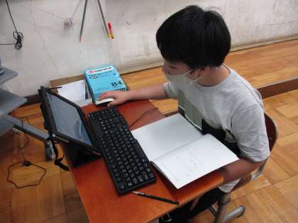 タブレットや教科書,資料集を使って学習している様子です。
