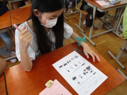 聞きとったことをワークシートに書いたり,振り返りを書いたりしている様子です。