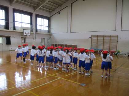 昨日身長を測ったので,背の順で並ぶ練習をしました。隣や前後の友だちの顔を確認して,もう一度別の向きで並びなおしましたが,上手に並べました!