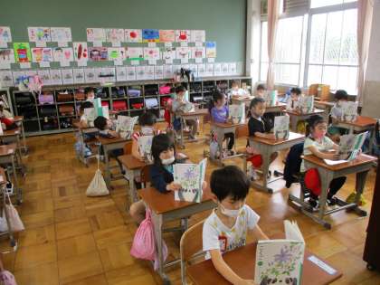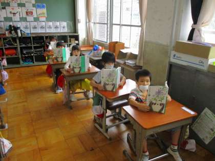 音読の練習をしました。背筋を伸ばして足を踏ん張って,教科書をしっかりと持って読みます。1年生の音読では,口をしっかりと動かすことが大切です。「あいうえお」の口の形に気をつけて読むことができました。