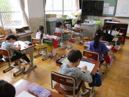 初めての書写の学習でした。姿勢やえんぴつの持ち方に気をつけて書く練習をしました。